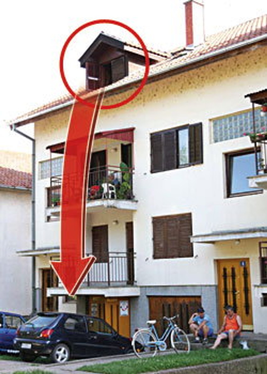 Ispod badže u kojoj je prozor kroz koji je pala A.A. je terasa sa nadstrešnicom. Do ivice prozora ima možda dva metra. Vidno iskrivljen lim okapnice svedoči da je nadstrešnica spasla devojčicu težih posledica. Đorđe Popović pokazujemesto odakle mu se devojčica javila sa trave.