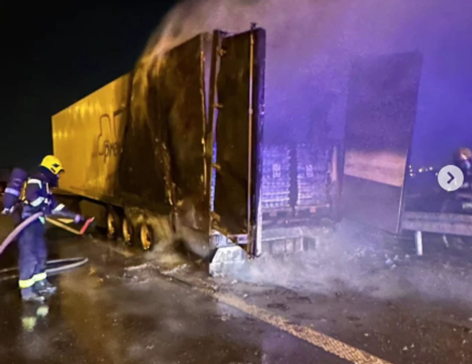 Kako se vidi na snimku objavljenom na Instagram stranici 192_rs, vatra je zahvatila prikolicu, a iznad puta se nadvio dim.