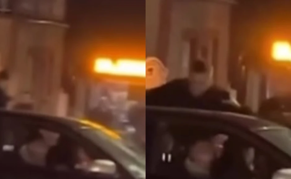 Nekoliko sekundi kasnije, on dolazi do prozora i pesnicama udara vozača, dok pored njega sedi ženska osoba koja pokušava da smiri situaciju.