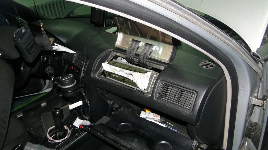 Prilikom pregleda automobila, carinik je posumnjao da je ispred suvozačkog sedišta, u prostoru predviđenom za vazdušni jastuk, nešto sakriveno, pa je odlučio da skine njegov poklopac.