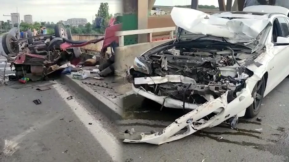 Sudarili su se vozilo marke "BMW", nemačkih registracija i kamion "Zastava" iz Beograda, a vozač je najverovatnije ispao iz kabine zajedno sa putnikom iz njegovog vozila i pao preko zaštitne ograde sa Pančevačkog mosta.