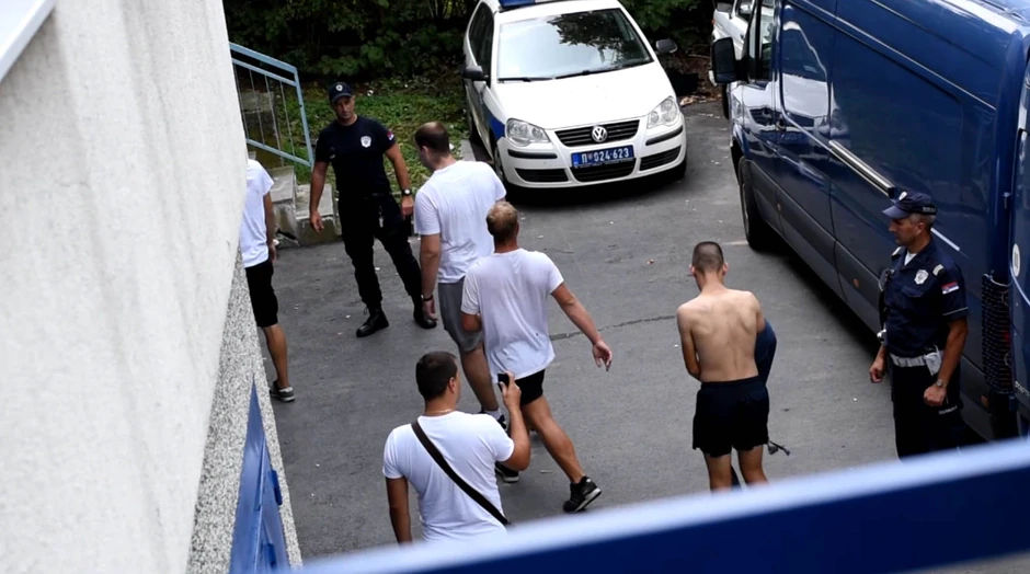 Navijači "Hajduka" koji su juče na putu za Sofiju pravili haos u Vrčinu, danas su uhapšeni kada su se vraćali kući preko Srbije, i 28 njih je sprovedeno na saslušanje. Na ekskluzivnom snimku "Blica", možete videti kako ih policija iz marica uvodi u policijsku stanicu u Grockoj, odakle su odmah sprovedeni na saslušanje u Beograd kod sudije za prekršaje.
