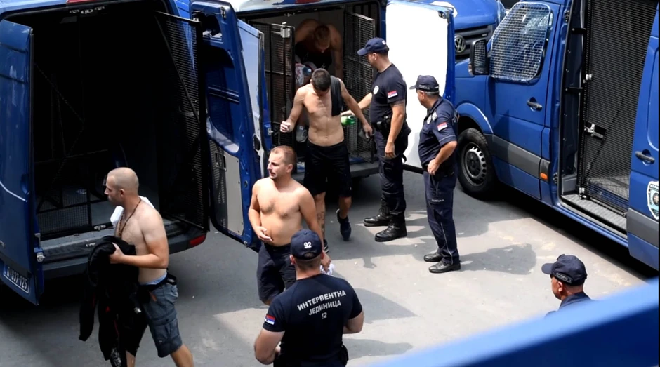 Huligani su iz Grocke pod policijskom pratnjom upućeni u gradski SUP u Bulevaru despota Stefana, rekao je predsednik Prekršajnog suda u Beogradu Milan Marinković.