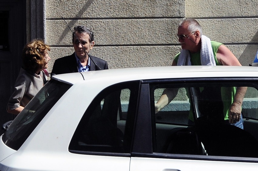 Vidno iscprljen, nije mogao sam da izađe iz taksija koji je njega i suprugu dovezao ispred zgrade, pa mu je pomogao vozač. Kada je ugledao reportere „Blica”, osmehnuo se, ali nije bio spreman za duži razgovor.