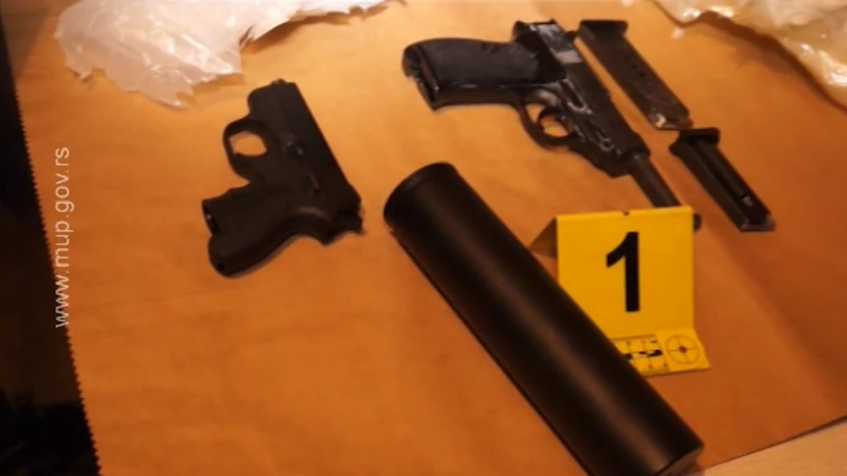 Policija je, prilikom pretresa kuće u Staroj Pazovi u kojoj je osumnjičeni neprijavljeno boravio, pronašla i oduzela dve automatske puške sa dva okvira, tri pištolja sa okvirima, jedan prigušivač, 450 grama plastičnog eksploziva, 131 komad municije različitog kalibra, dve elektrodetonatorske kapisle i tri ručne bombe.