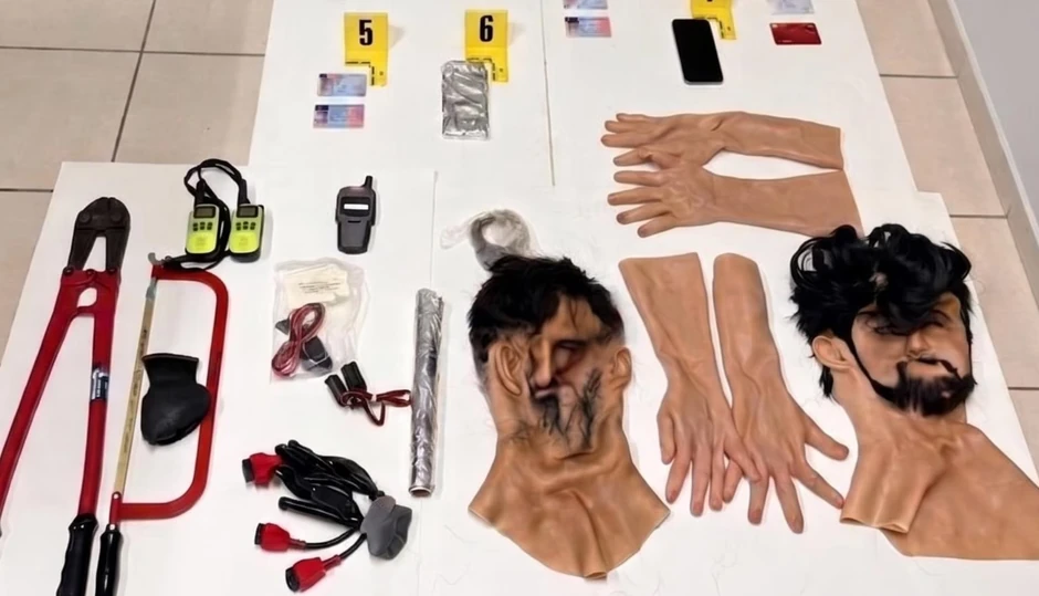 Tokom pretresa stana, karabinjeri su pronašli čitav "arsenal" opreme za kriminalne aktivnosti - lažna dokumenta, silikonske maske, rukavice koje imitiraju ljudsku kožu, uređaje za obijanje, više mobilnih telefona, radio-stanice, kao i ukradene registarske tablice.