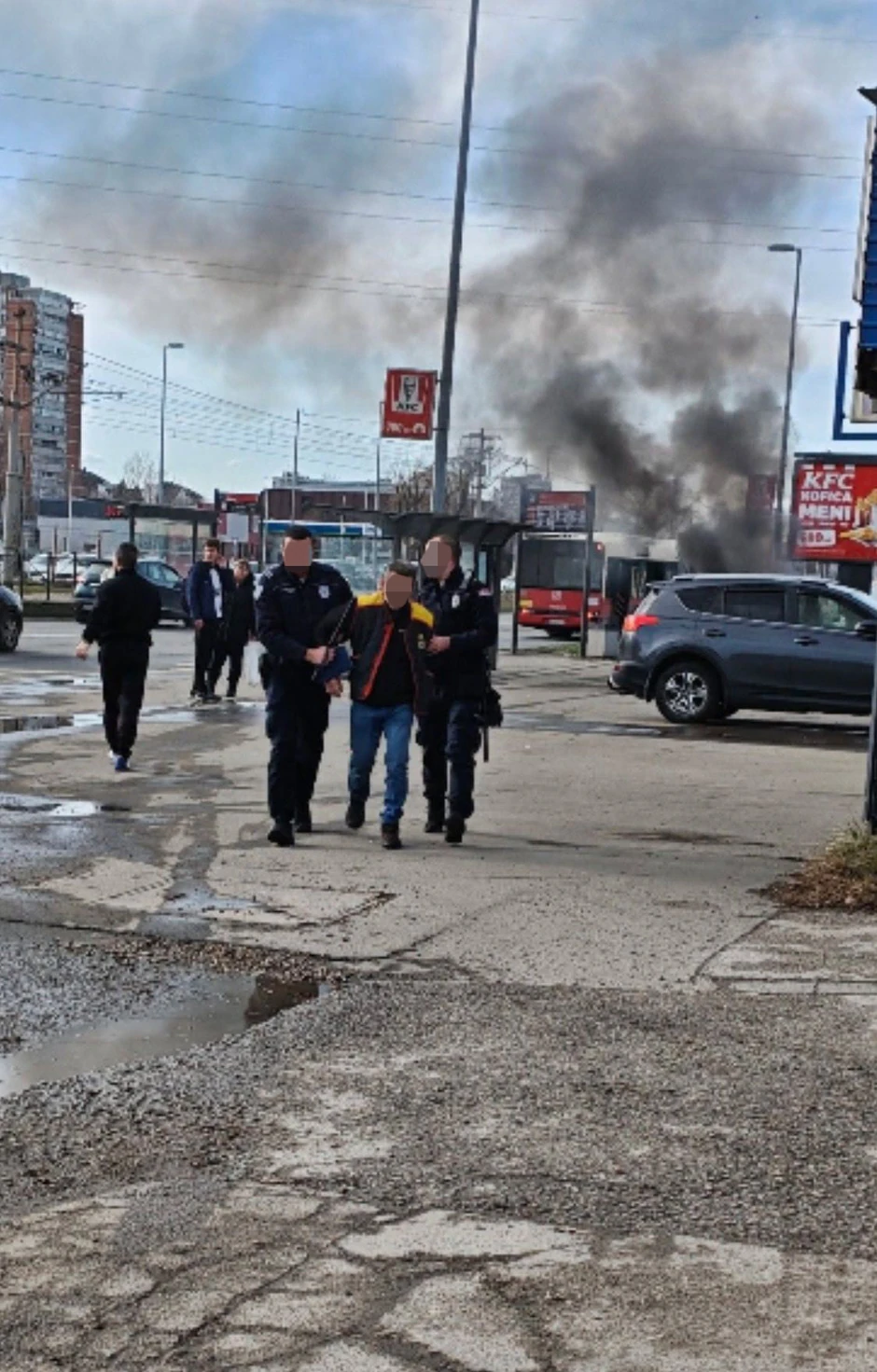 Podsetimo, do izbijanja požara na dva automobila došlo je na parkingu između manje Prvomajske ulice i Jurija Gagarina u Bloku 70, nedaleko od autobuske stanice u smeru ka blokovima i Ledinama.