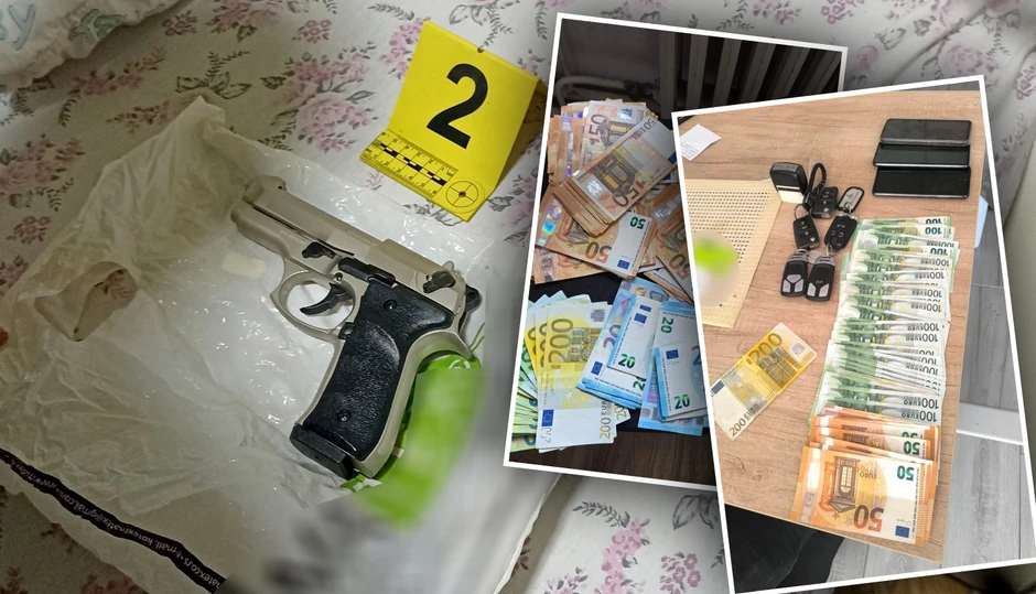 Prilikom pretresanja stana i drugih prostorija osumnjičenih pronađena su i privremeno oduzeta tri automobila, više mobilnih telefona, oružje, više od 40.000 evra i 650.000 dinara.