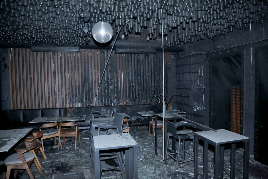 "Blicovi" reporteri su nakon gašenja požara, ušli u lokal i zatekli garež i stakliće svuda unaokolo.