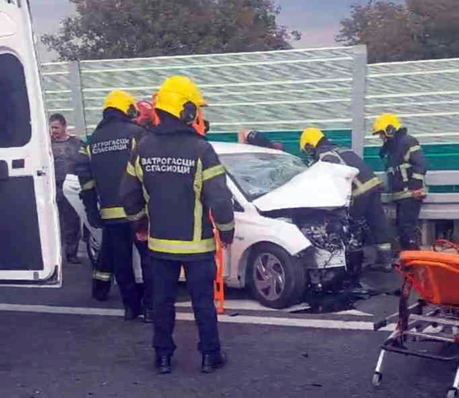 Dve osobe teško su povređene u stravičnoj saobraćajnoj nesreći koja se dogodila danas kod obilaznice u Beogradu, na auto-putu Miloš Veliki kod Jakova, saznaje "Blic".