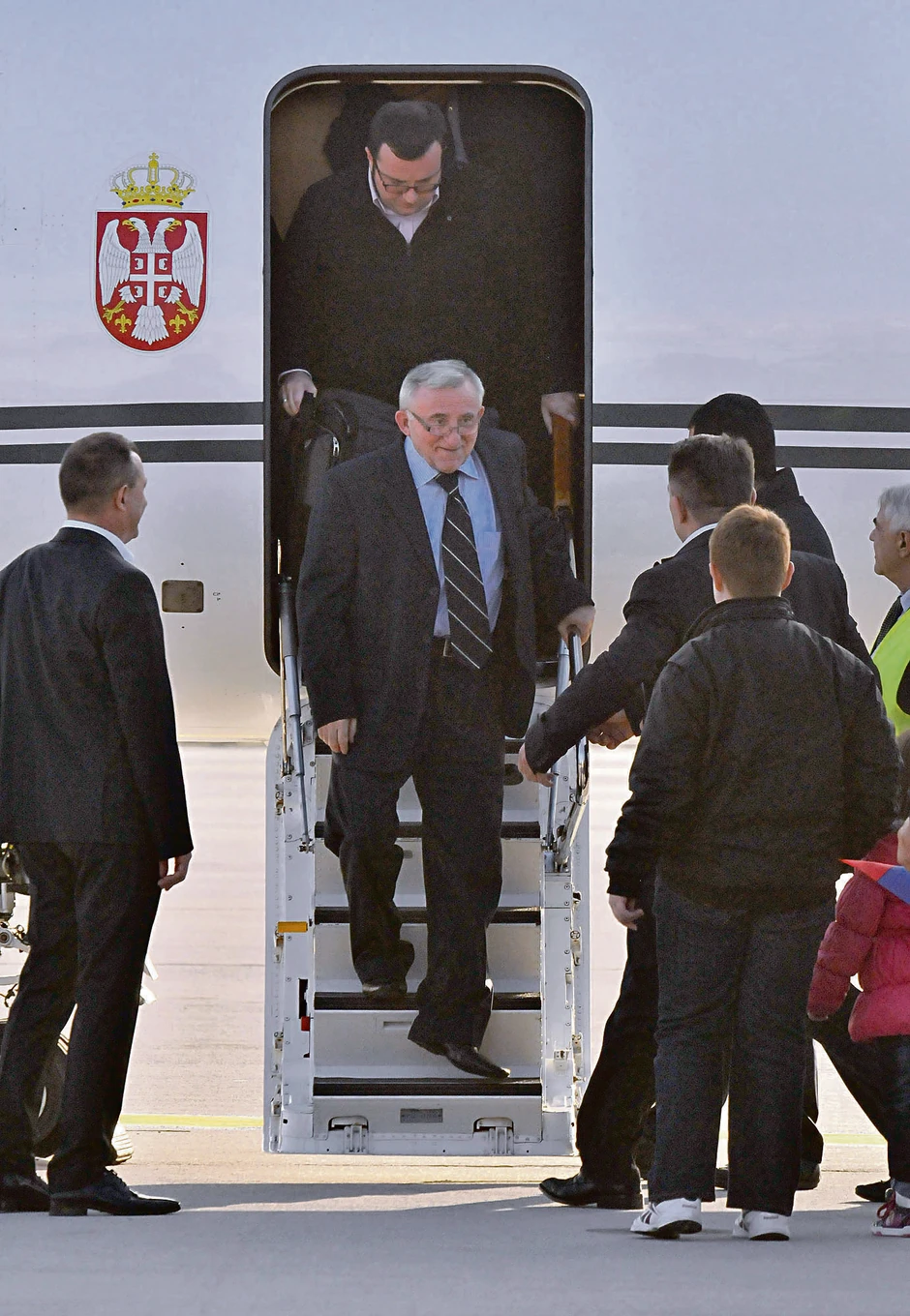 Ministar odbrane Srbije Bratislav Gašić i ministar pravde Nikola Selaković bili su u avionu Vlade Srbije kojim je general stigao u Srbiju, a na pisti aerodroma u Nišu prvi u zagrljaj poleteli su mu unuci, supruga i članovi najuže porodice.