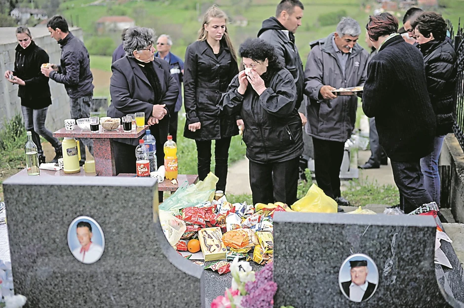 Na grobovima petoro nastradalih Despotovića muk i tišina. Rođaci su u tišini služili hranu koja „valja da se pojede na groblju za pokoj duše“ - sokove, ribu i baklave.