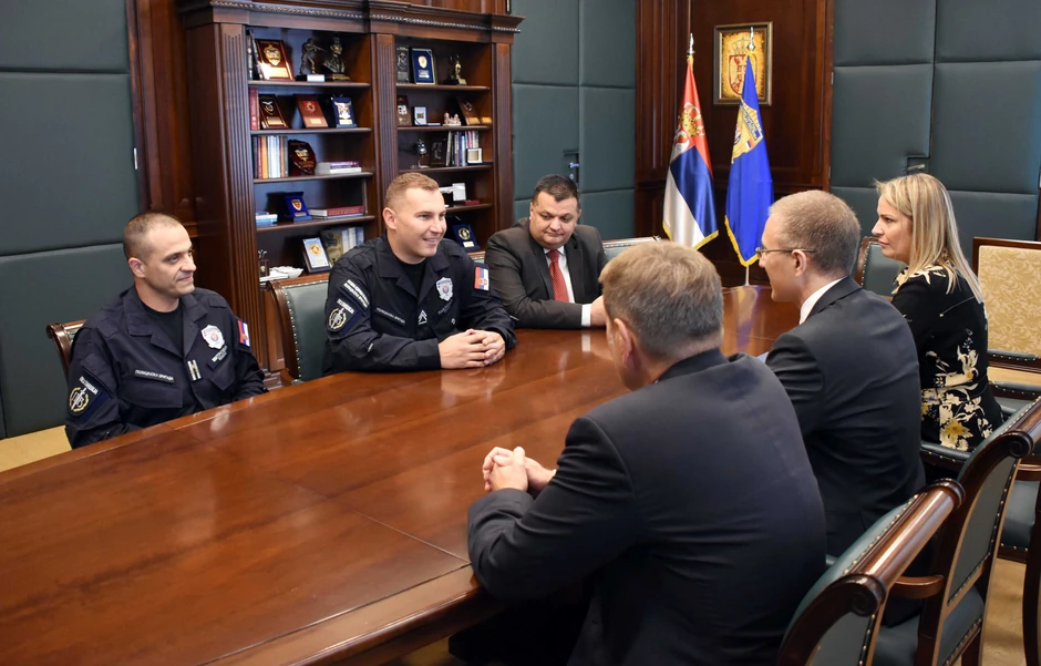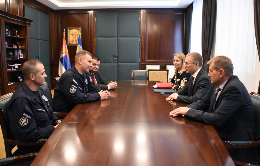 Potpredsednik Vlade Republike Srbije i ministar unutrašnjih poslova dr Nebojša Stefanović novčano je nagradio pripadnika Policijske brigade Nemanju Pavlovića koji je, u trenutku kada nije bio na dužnosti, goloruk savladao razbojnika u Mladenovcu.