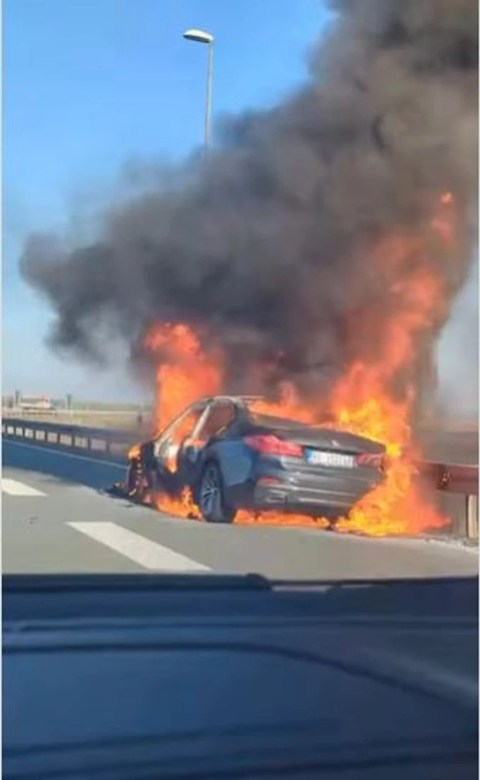 Vatra je zahvatila ceo automobil u blizini zaštitne ograde, a video snimak napravio je jedan od vozača koji je prolazio auto-putem.