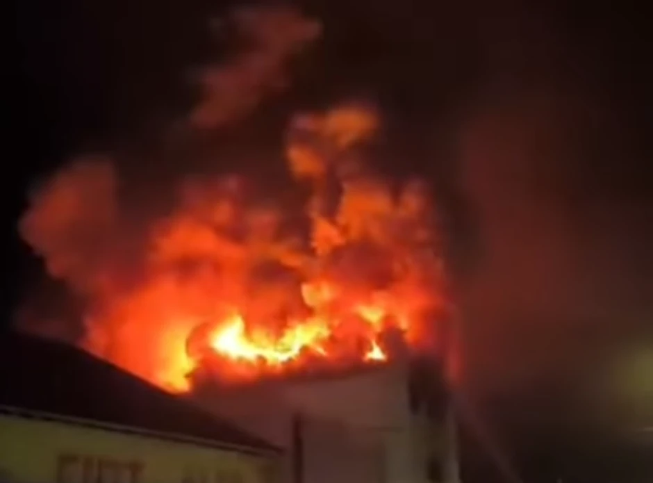 Video snimci prikazuju ogroman plamen koji dolazi iz zgrade.