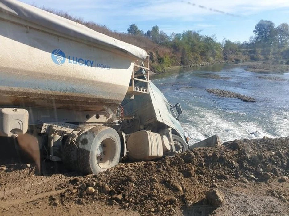 - Težak nekoliko tona, pun kamena sleteo je u korito reke na privremenom mostu koji je izgrađen za potrebe izgradnje samog koridora. Pomalo nesvakidašnja scena u današnje vreme, na svu sreću vozač je prošao nepovređen - kažu meštani.