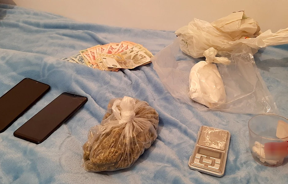 Policija je, prilikom pretresa stana i drugih prostorija u Rakovici, u kojem osumnjičeni neprijavljeno boravi, pronašla više od 500 grama amfetamina, oko 100 grama marihuane, elektronsku vagicu, dva mobilna telefona i novac.