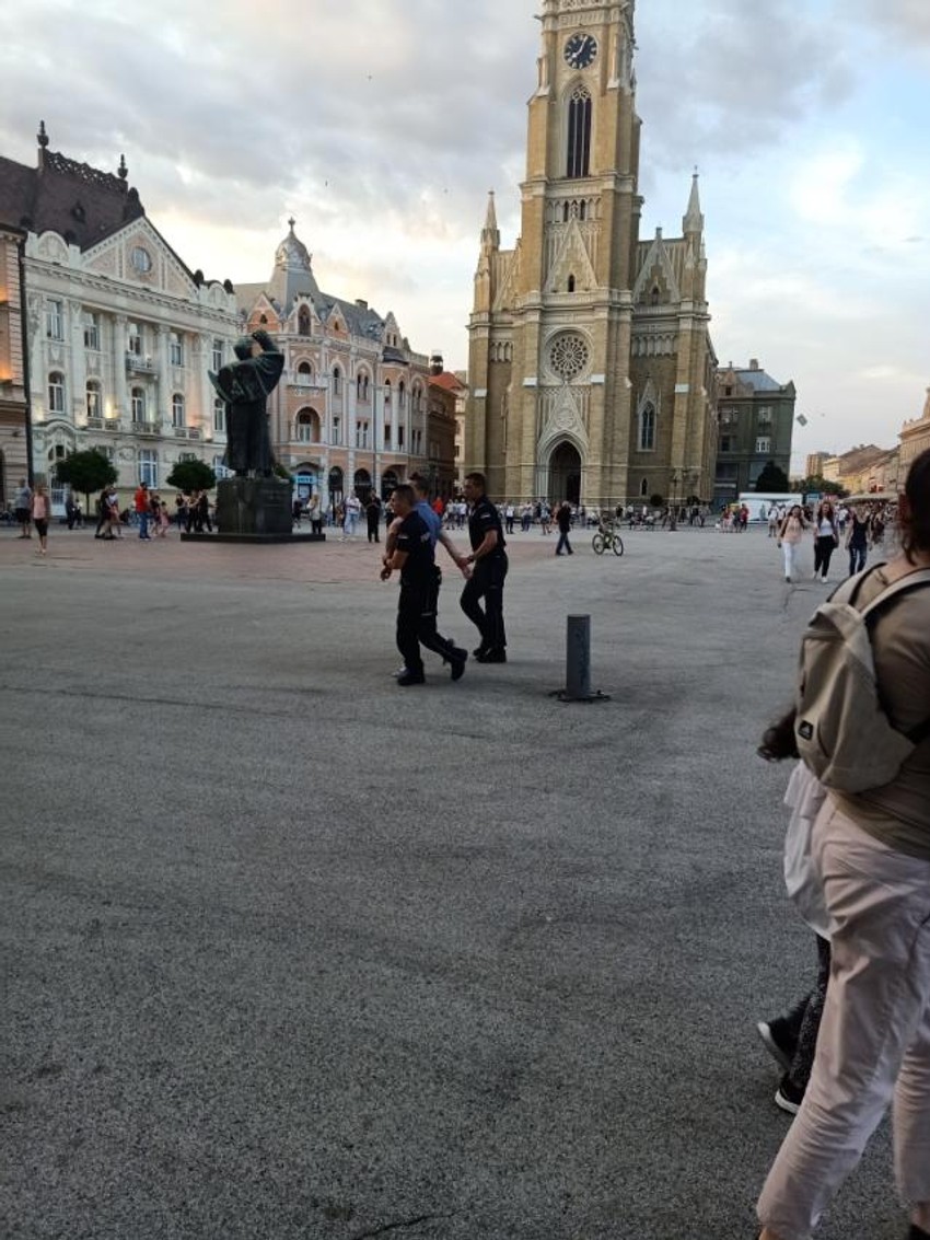 Dodaje da se sve odigralo pred brojnim građanima i decom na punom Trgu slobode te da je samo zahvaljujući munjevitoj akciji policije koja je bila u neposrednoj blizini izbegnut veći incident jer je ustanovljeno da je osumnjičeni za paljevinu kod sebe imao još jedan molotovljev koktel.