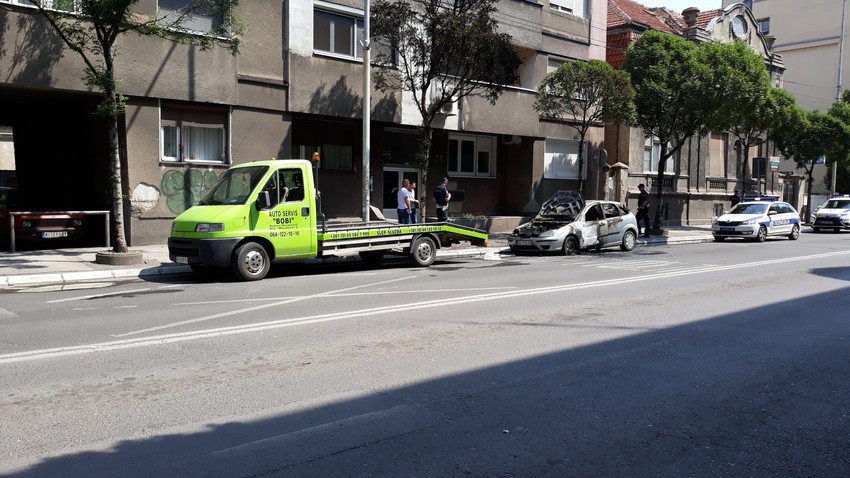 Stanare okolnih zgrada prenuo je jak prasak koji se začuo po svetlu sudeći, kada su na vozilu pukle vatrom zahvaćene gume. Policija je izvršila uviđaj i konstatovala da nema sumnjivih okolnosti.