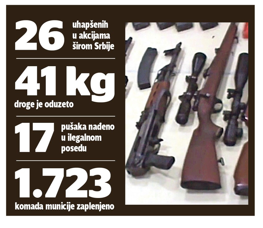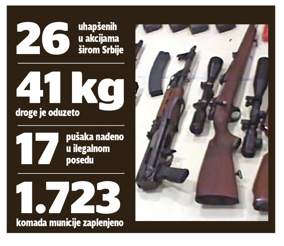 Ovo hapšenje deo je uspešne policijske akcije u kojoj je uhapšeno čak 26 osoba zbog droge i oružja širom Srbije, a zaplenjeno je više od 41 kilograma različitih narkotika, oduzeto 17 pušaka i 1.723 komada municije.