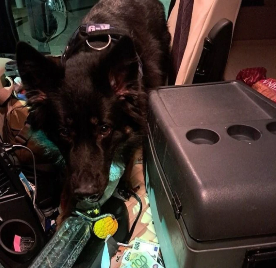 Iako je vozač mislio da će tajnu koju krije uspeti da sačuva, sve je palo u vodu kada se pred njim pojavio službeni pas za detekciju novca, jer je Buli prilikom pregleda unutrašnjosti kabine pozitivno reagovao na sumnjivu materiju ispod plastičnog prenosnog frižidera.