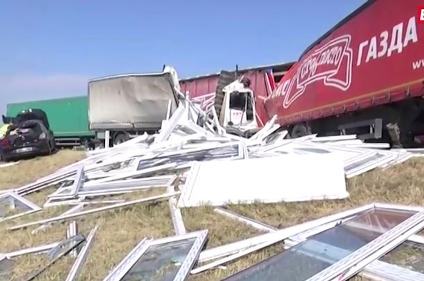 Stravične fotografije sa lica mesta pokazuju da je kabina kamiona u kojoj se nalazio Petrik od siline udarca potpuno smrskana, dok su prozori koje je prevozio ispali iz kamiona i rasuli se po putu.