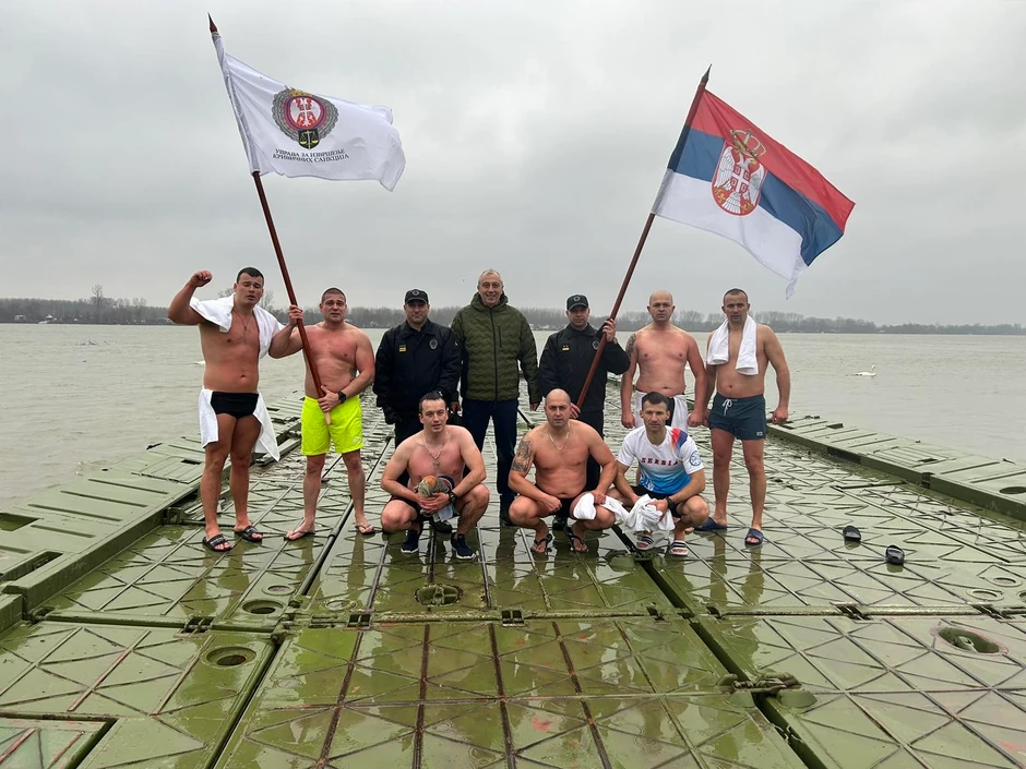 Pripadnici Službe za obezbeđenje Kazneno-popravnog zavoda u Beogradu, Posebne pritvorske jedinice Okružnog zatvora u Beogradu i Kazneno-popravnog zavoda u Padinskoj Skeli učestvovali su danas u takmičenju u plivanju za Časni krst koje se tradicionalno organizuje na verski praznik Bogojavljenje u Zemunu.