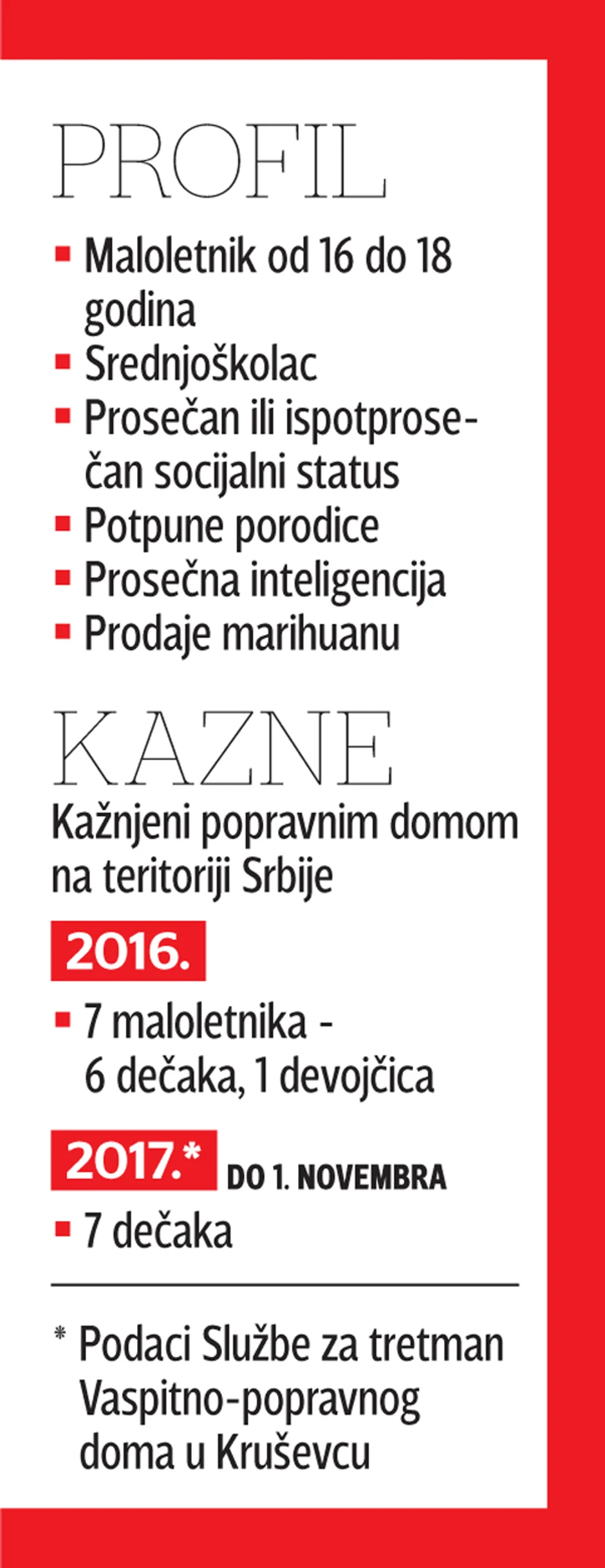 Ivan Adamov (16) ubijen je početkom decembra prošle godine u dogovorenoj tuči sa godinu dana starijim dečakom. Petnaest dana ranije trojica maloletnika pokušali su da opljačkaju staricu V. R. (86) iživljavajući se nad njom. Istražili smo koliko je maloletnički kriminal zastupljen u Srbiji, ali i kakav je profil jednog maloletnog delinkventa.