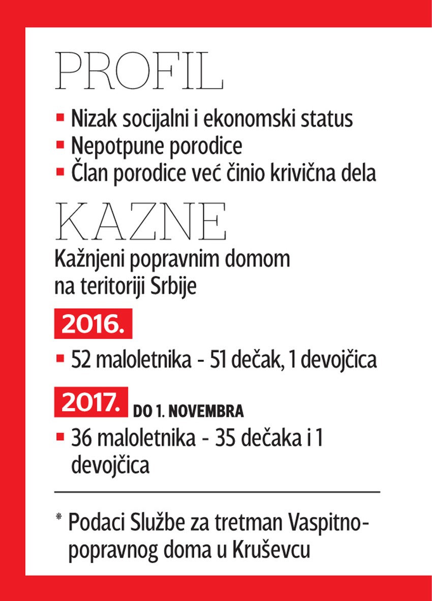 U Upravi za izvršenje krivičnih sankcija za "Blic" objašnjavaju da su maloletnici, koji su upućeni u dom zbog teških krađa, pretežno iz porodica niskog socijalno-ekonomskog statusa.