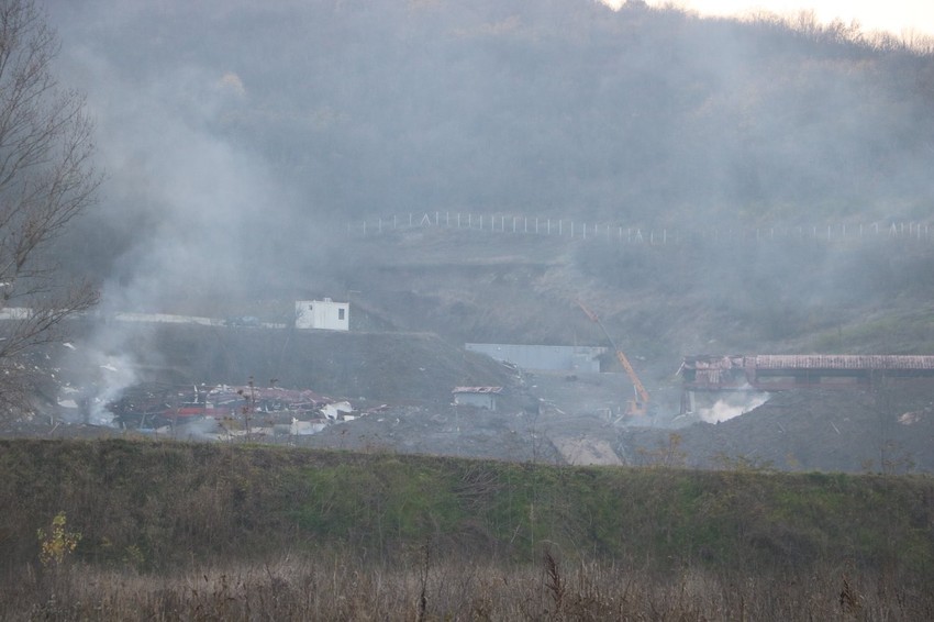 Iz kruga eksplozije još se širi dim koji se vidi iz okolnih naselja.