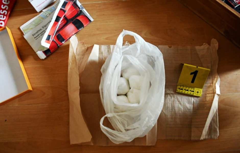 Pretresom stanova M. M. pronađeno je oko 550 grama amfetamina, manja količina marihuane i vagica za precizno merenje, dok je u stanu osumnjičenog N. R. zaplenjeno oko 600 grama amfetamina, 50 grama marihuane i dve vagice.