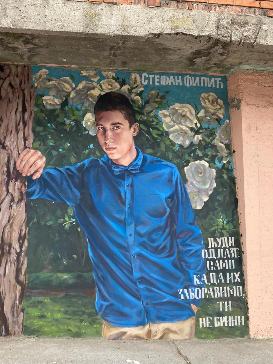 - Evo i posle skoro dve i po godine Velika Plana nije zaboravila svog nedužno stradalog mladića Stefana Filića, mladića kog su bez ikakvog povoda i krivice, dok je štitio nejač od 16 godina, ubili pijani i obesni huligani - rekeli su za "Blic" u Stefanovoj pordici i dodali da je mural naslikala akademska slikarka Una Nikolić i njen kolega Đurađ Stevanović iz Šapca: