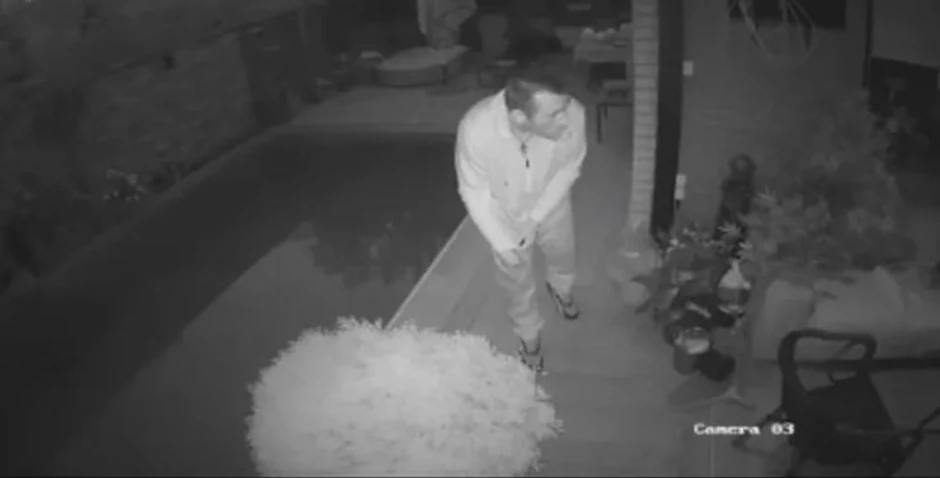 Na snimku se vidi muškarac koji se šunja u dvorištu jedne kuće. Njegovo lice je u potpunosti snimila nadzorna kamera.