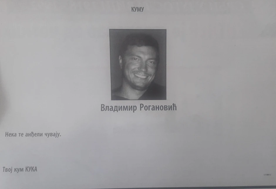 Pored nje, od Roganovića se oprostio po svemu sudeći kum, a na čitulji kratko piše: "Kumu, neka te anđeli čuvaju", a ispod je potpisan kum Kuka.