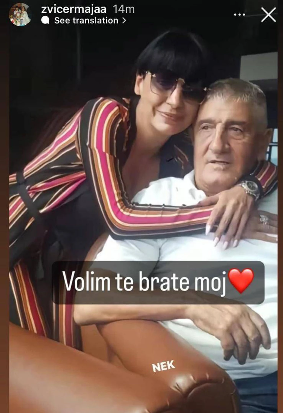 Ispod prve fotografije, vide se Maja i Brano u zagrljaju, a ispod piše emotivna poruka koja glasi: "Volim te, brate moj".
