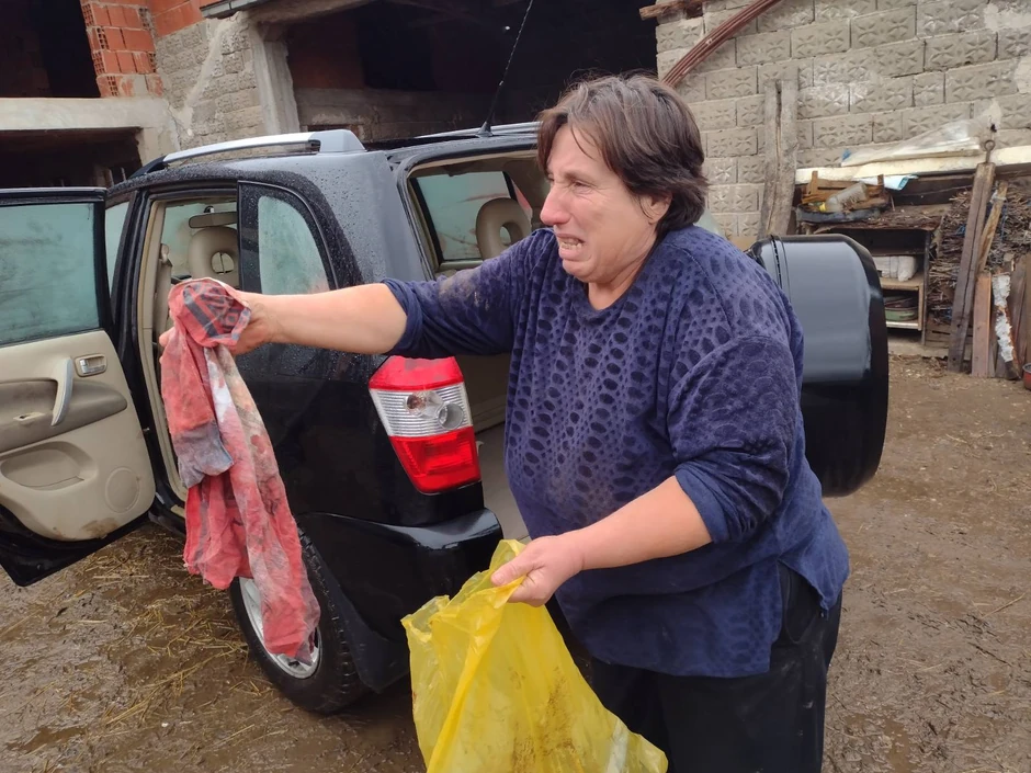 - Ležao je sav u krvi... Zvali smo Hitnu pomoć, ali ona nikako da dođe, a dete mi ispušta dušu.... Stavili smo ga u dzip da ga vozimo u ambulantu... Mnogo je krvario iz rane koja mu je naneta nožem - priča uplakana majka dok pokazuje tragove krvi u automobilu i mladićeve krvave stvari.