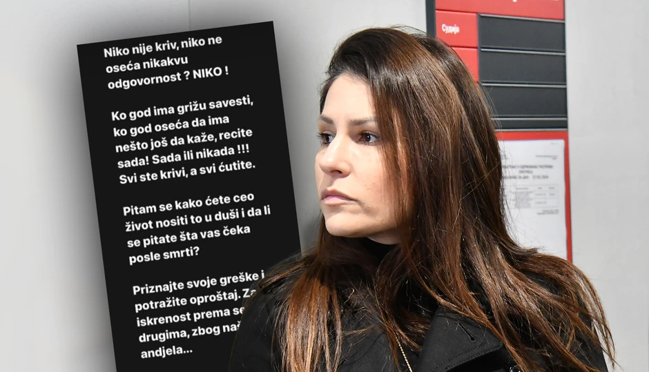 - Niko nije kriv, niko ne oseća nikakvu odgovornost? Niko? Ko god da ima grižu savesti, ko god oseća da ima nešto još da kaže, recite sada! Sada ili nikada! Svi ste krivi, a svi ćutite. Pitam se kako ćete ceo život nositi to na duši i da li se pitate šta vas čeka posle smrti? Priznajte svoje greške i potražite oproštaj. Za iskrenost prema sebi i drugima, zbog naših anđela.. Ja Vam sigurno oprostiti neću, ali onaj gore možda - napisala je Biljana.