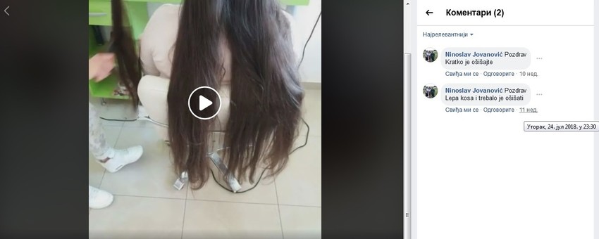 Pored jednog video snimka devojke sa dugom kosom Jovanović je "navijao" da bude ošišana pa je napisao: "Pozdrav kratko je ošišajte" i "Lepa kosa i trebalo je ošišati", a kraj drugog: "Ćao, svaka čast, lepu kosu ste joj isekli" i "Ja bih nju kratko šišao".