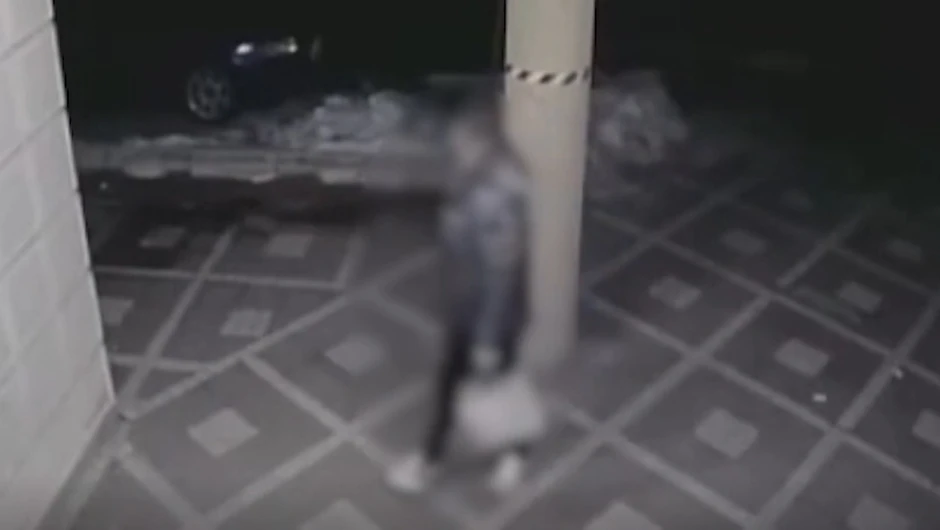 Kako se vidi na snimku, čovek prilazi ulazu zgrade kada mu iza leđa prilazi maskirani muškarac i zamahuje palicom.