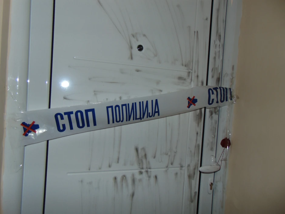 Došli su na vrata, i kada im je otvorio, stavili mu lisice na ruke.
