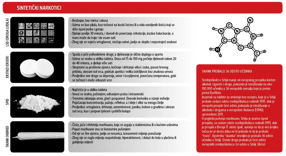 - Niz sintetičkih droga preko interneta u kratkom roku nađu svoj put do noćnih klubova i ulica. Konzumacija ovih droga sa sobom nosi dodatni rizik zbog slabe informisanosti mladih, pa često dođe do predoziranja. Prema istraživanju koje smo radili, mladi sintetičku drogu u 37 odsto slučajeva nabavljaju u noćnim klubovima ili na zabavama. Taj podatak je zabrinjavajući - upozorava Piskalović.