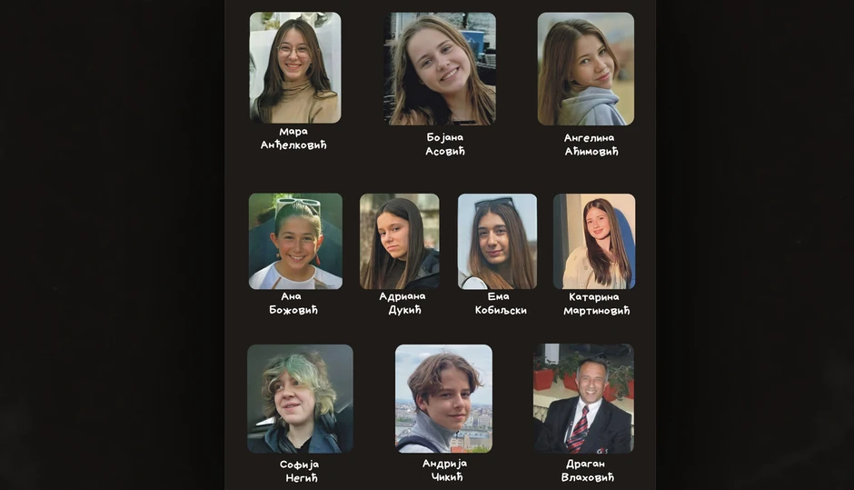 Naši, Mara Anđelković, Bojana Asović, Angelina Aćimović, Ana Božović, Adriana Dukić, Ema Кobiljski, Кatarina Martinović, Sofija Negić, Andrija Čikić i Dragan Vlahović trajno su obeležje naše škole zbog onoga što su bili i onoga što bi postali da nisu u svom uzletu prerano zaustavljeni. Neka im je večna slava!"