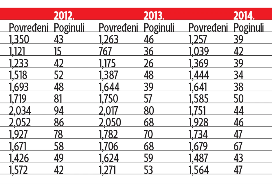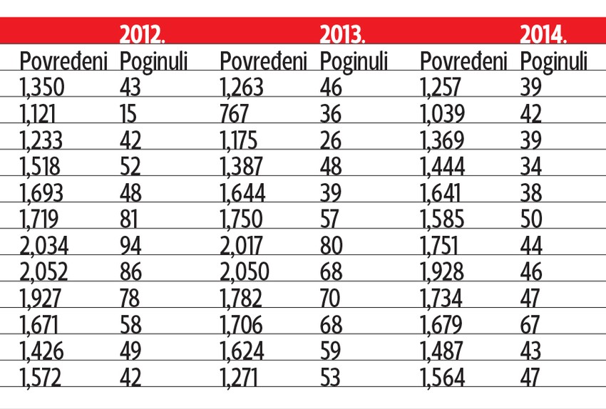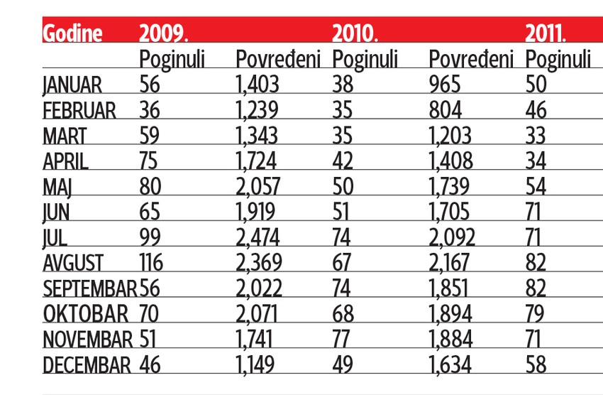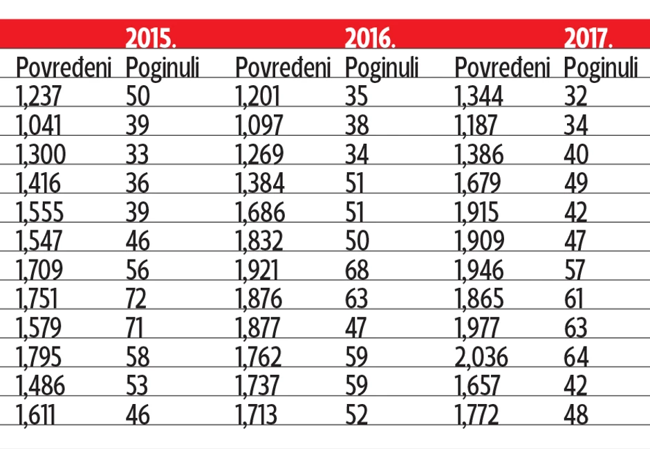 Radenković kaže da su od početka ove godine u našoj zemlji registrovane ukupno 22.072 saobraćajne nezgode, u kojima je 311 lica izgubilo život, dok je 10.513 lica povređeno. Upoređujući podatke za period od 1. januara do 15. avgusta ove, sa prethodne tri godine, najviše ljudi poginulo je 2016. (362), dok je najmanje nastradalih bilo 2018. (294).
