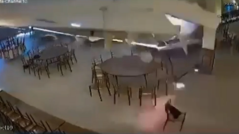 Najpre se čulo slabo pucketanje, pa jače, a onda je deo po deo plafona na velikoj sali restorana Montale u hotelu „Leskovac“ u samom centru grada počeo da je da pada dok se nije kompletno stropoštao u luksuzno opremljen prostor.