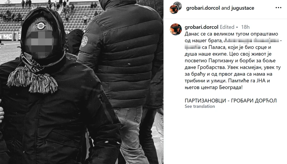 - Danas se sa velikom tugom opraštamo od našeg brata sa Palasa, koji je bio srce i duša naše ekipe. Ceo svoj život je posvetio Partizanu i borbi za bolje dane Grobarstva. Uvek nasmejan, uvek tu za braću i od prvog dana sa nama na tribini i ulici. Pamtiće ga JNA i njegov centar Beograda - pisalo je u objavi koju su potpisali "Grobari Dorćol".