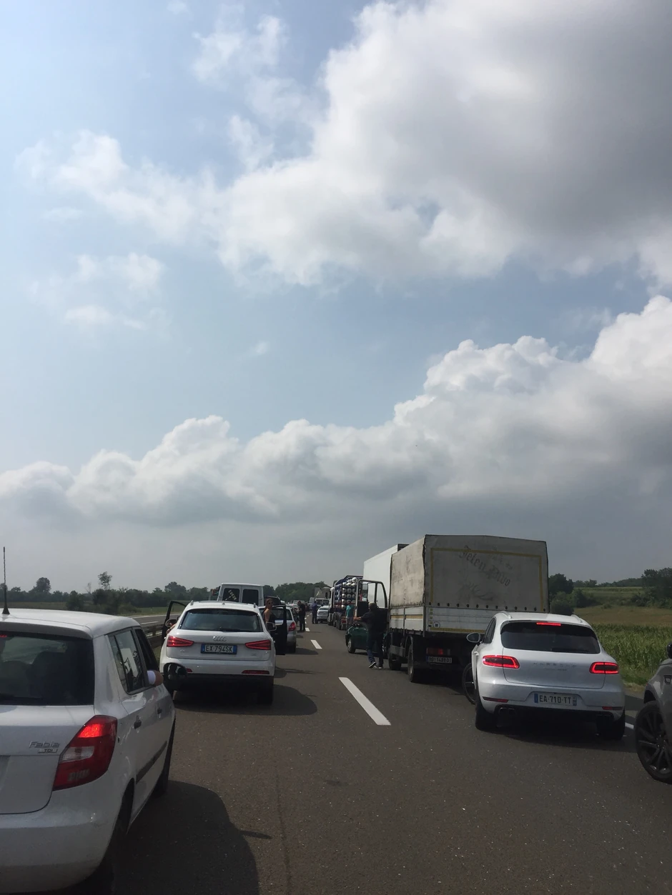Saobraćaj je u prekidu. Kako saznajemo formirala se kolona duga više od pet kilometara, međutim saobraćaj je polako počeo da se kreće.