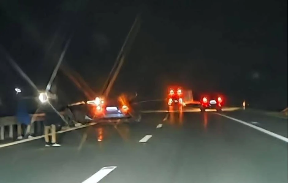 Kako se može videti na fotografiji, više osoba i vozilo bez obeležja, stoje na sred brze trake. Kako je reč o neosvetljenom delu puta, upozoravaju se vozači na opreznu vožnju.