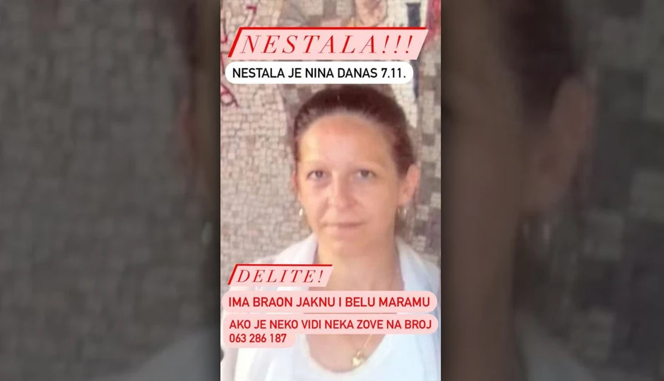 Kako je kazao njen suprug Jovan, Ninu neumorno traže, ali, nažalost, nema joj traga.