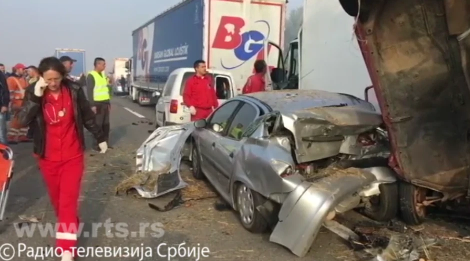 Saobraćaj u oba smera je zaustavljen, u sudaru je učestvovalo više od 40 vozila – kamioni, automobili na obe strane auto-puta. Neka od vozila su potpuno uništena, do neprepoznatljivosti.