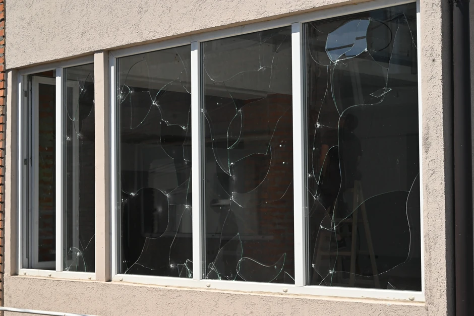 Geleri su oštetili prozore i fasade oba objekta, a oštećen je i "sitroen" koji je bio parkiran u blizini.